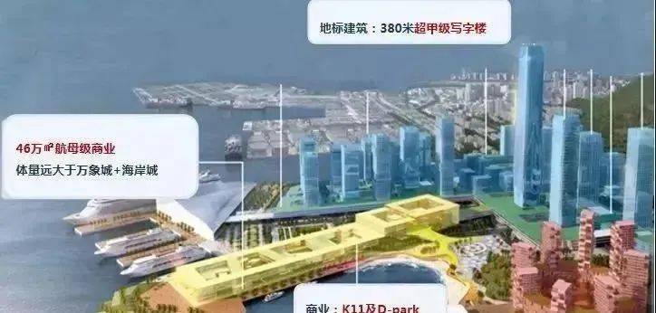 业态:集邮轮母港、总部办公、顶级商业、高端居住、五星级酒店、文化艺术、国际学校、国际医院等多元业态于一体