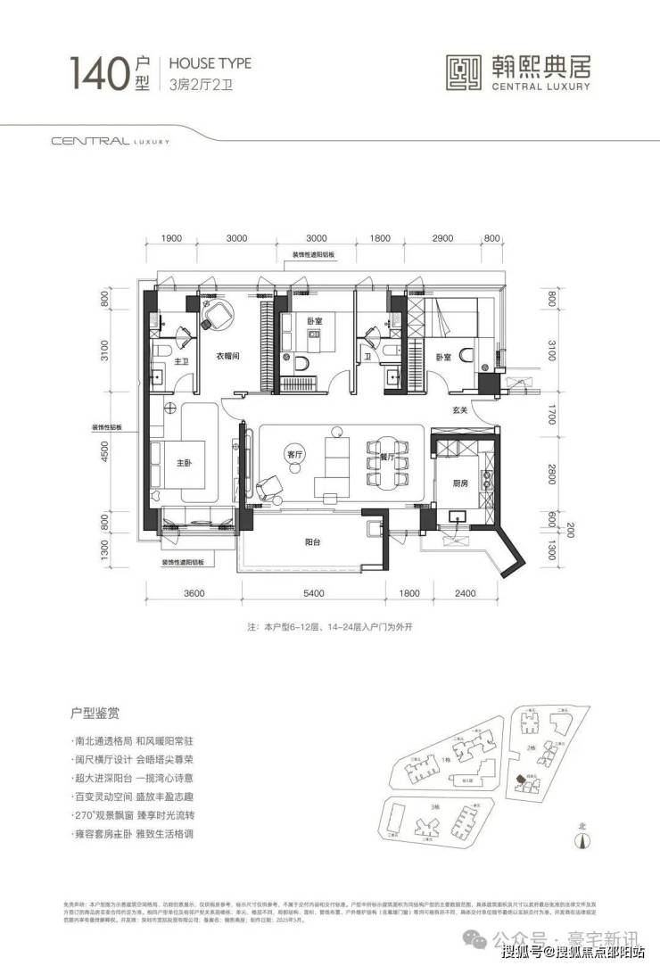 奢阔空间丨中心极境 礼献粤海 翰熙典居,粤海十年之后再上新,全新奢居综合体礼献峯层。可售主力户型新规后建面约105-140㎡奢雅空间,全明方正户型将空间奢阔感与生活舒适度完美契合。明星户型超6米阳台开间,全维度巨幕景观视野,尽揽湾心万千风景。