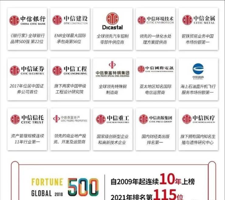 国有大型综合性跨国企业集团——中信集团,重归红树湾中信集团为国有大型综合性跨国企业集团,世界500强第115位。