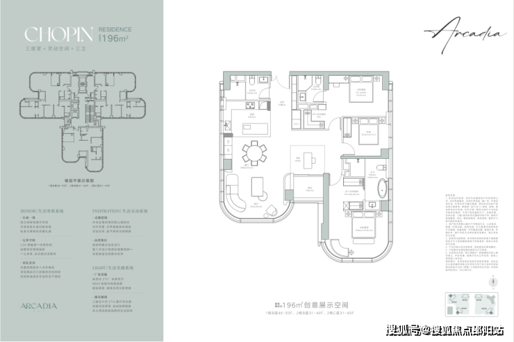 建面约196㎡户型是三居室+灵动空间+三卫的奢阔设计,让生活更加从容且惬意,匹配对生活有追求的商务精英或高净值人群的居住需求。
