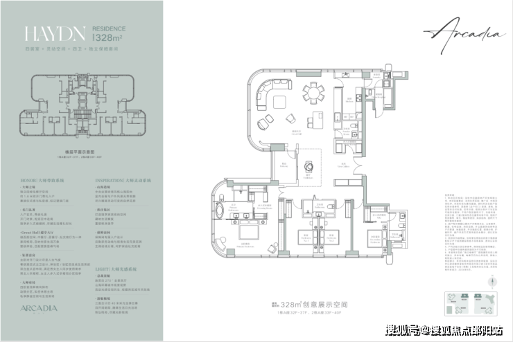 建面约328㎡户型创意展示空间效果图,实际以交付为准