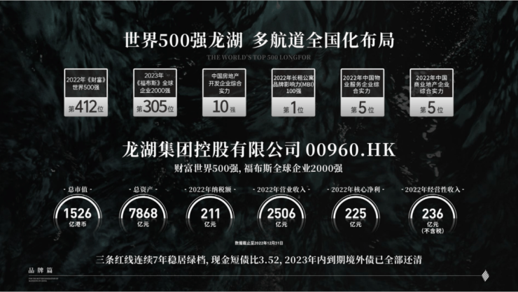 龙湖集团,世界500强,房地产综合实力TOP10。稳健的财务及持续的现金流,连续7年三道红线全绿档。