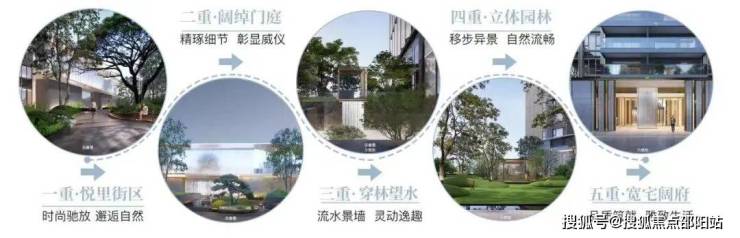 悦里街区、阔绰门庭、穿林望水、立体园林、宽宅阔府、层层递进,提升归家的仪式感与归属感。