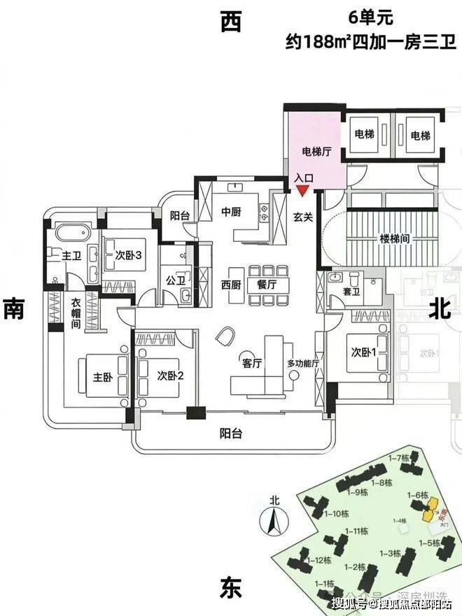 6单元:188㎡户型约60余套,总价约2500万起,单价约13.29万/㎡起【四房双套房+1灵动空间设计,奢阔享受】