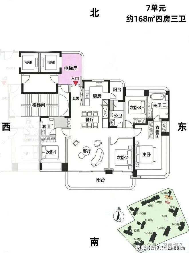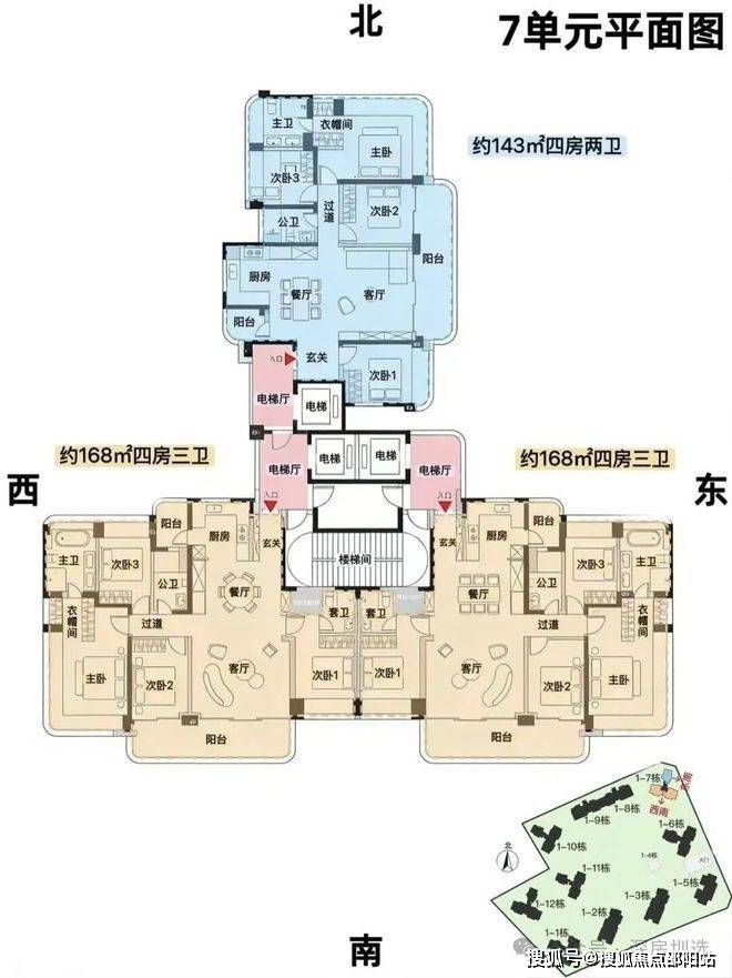 7单元:168㎡户型约40余套,总价约2200万起,单价约13.09万/㎡起【改善双套房,品价比之王】
