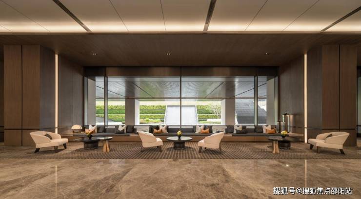 尊崇,从踏入璟喜的第一步开启。展厅级停车场与40米水景瀑布互通,将自然元素引入室内。由SCDA打造的酒店式入户大堂,采用简约温暖的色调搭配天然木饰面与打磨成墙布效果的石材,柔和宁静。落地窗前,黑白与金棕系的落座区与下沉庭院的生态水景相映合,景观更提取了建筑折面元素,加之水花流淌的形态,张弛有度。
