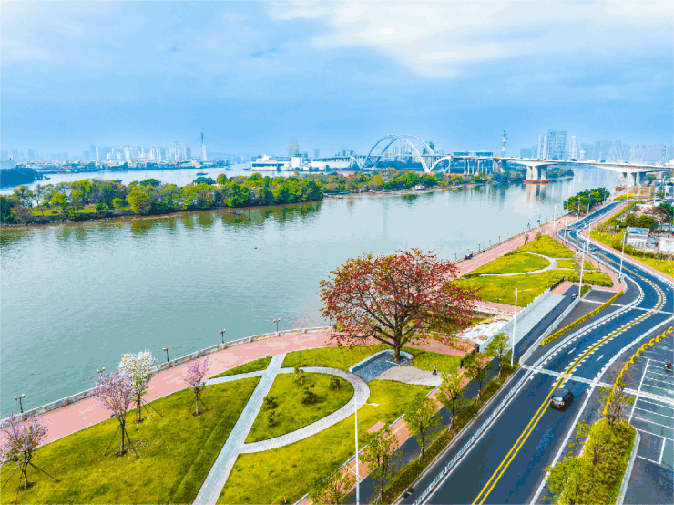 珠江后航道唯一南向看江新盘,坐拥约2.4公里(百度测距)浩瀚珠水美景,成为区域闪耀的江岸生活符号