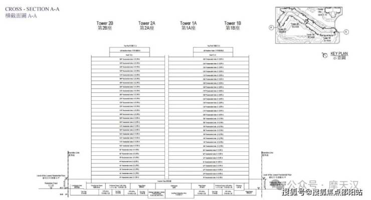 项目由2幢36层的高座物业及1幢8层低座住宅大楼组成,总建筑高度约111.53米(该地段分区计划大纲限制高度主水平基准上110米)。