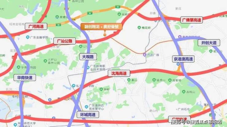 交通路网 5纵:华南快速、广州绕城高速、京港澳高速、大观路、开创大道