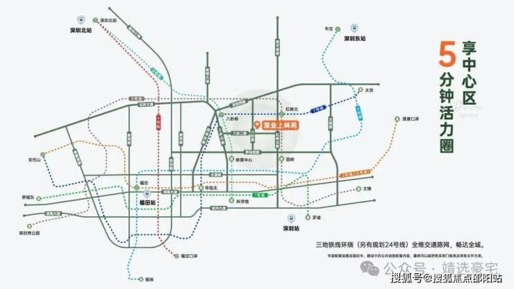 20分钟内抵达城市枢纽(福田高铁站、深圳北站、深圳站、福田口岸、皇岗口岸),出行方便。