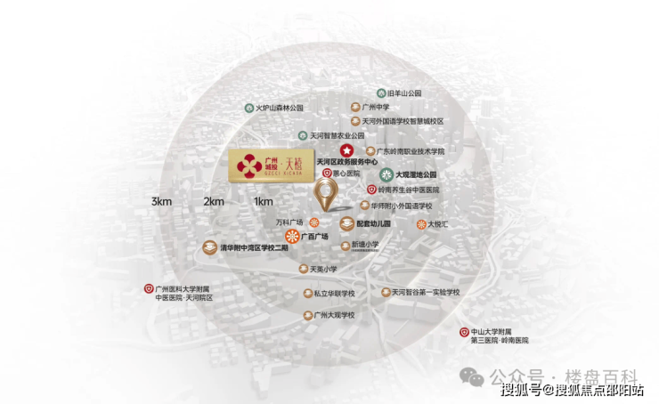 医疗——蕙心医院(约380米)、岭南养生谷中医医院(约1300米)等近在咫尺;广州医科大学附属中医医院·天河院区(约8km)、中山大学附属第三医院·岭南医院(约8km)等三甲医院环绕周边,为健康保驾护航;