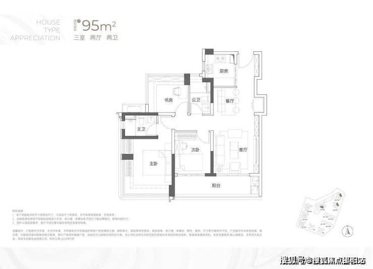 建面约95㎡3房2卫
