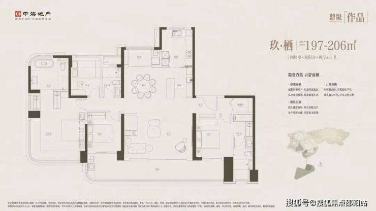 项目首推1栋和2栋的197-206-282㎡四房大平层,包括: