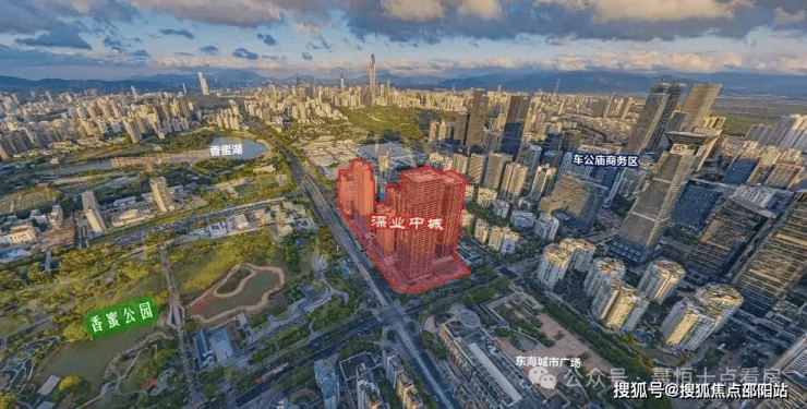 深业中城位于香蜜湖豪宅板块,红荔西路与农园路交汇处东南侧,北侧拥揽43万平米的香蜜公园,西侧是东海城市广场,南侧为东海花园老钱住宅区和车公庙商务区,东侧为香荔绿洲花园。