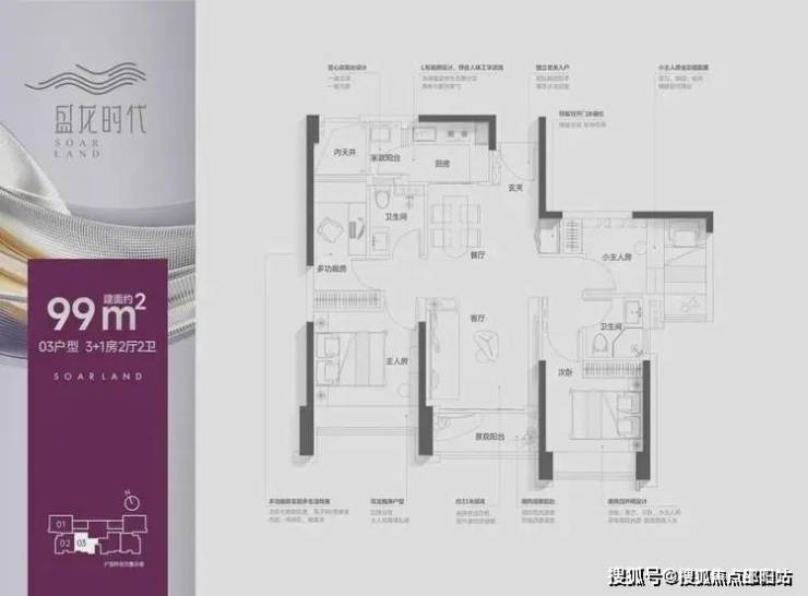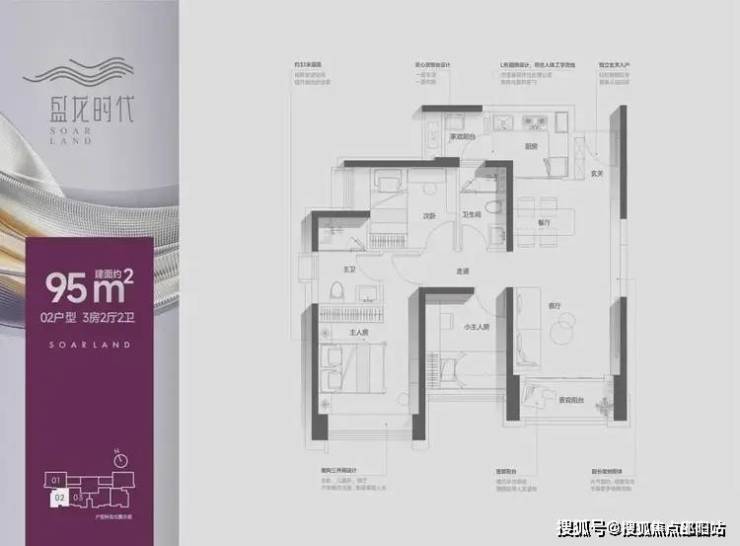 【户型面积】约99㎡3+1房2卫/95㎡3房2卫