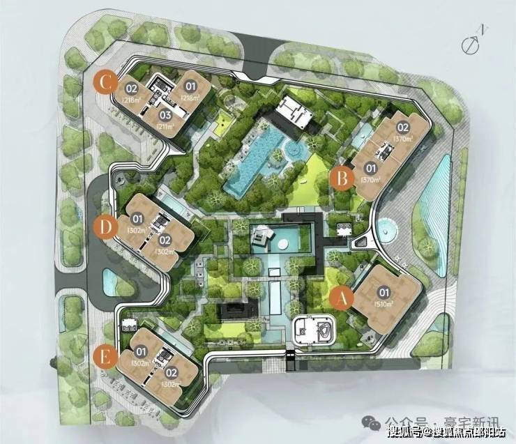 1E栋(1栋五单元)-43层:均为3梯2户,约305㎡,一层两户。