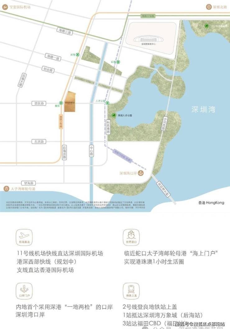 一席藏尽海/湖/园/城,四重盛景,踞守深圳湾畔约270°环瞰海景壮阔、湖境悠然、园景森氧、城脉璀璨的封面地脉。近享深圳人才公园,占地77万平方米,内湖面积约32万平方米,"公园生活圈"步行可达。(信息来源:深圳人才公园公众号)