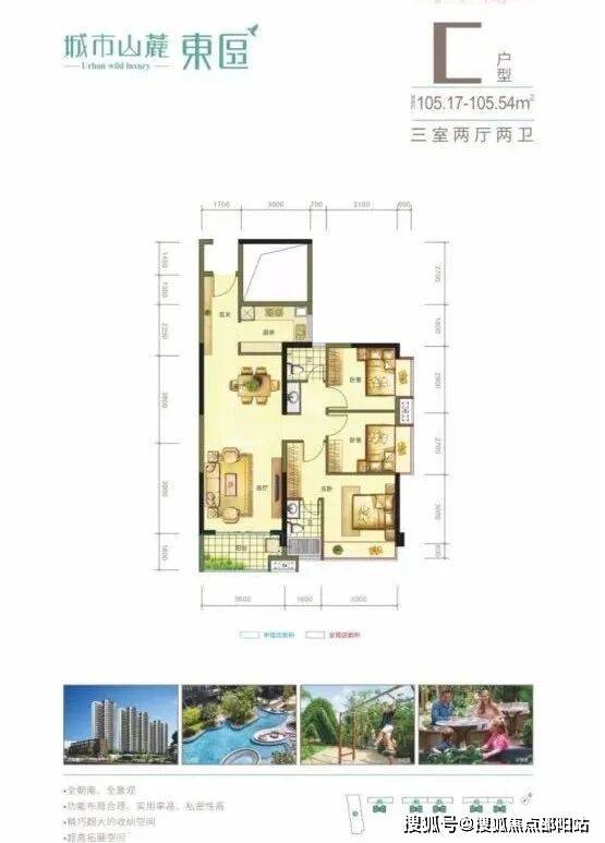 【产品】105-123㎡高拓3-5房,户户朝南,全明阳光房,赠送率高