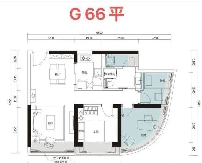 主力户型:约64-75㎡2-3房,位于B座45-46层高楼层,全屋高标精装配置齐全