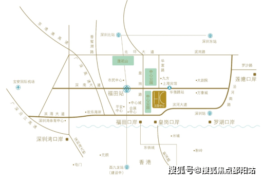 周边景观、汉国中心北望147万m的城央生态走廊一中心公园、东邻“中国电子第一街”的赛格广场、西瞰都市繁华福田中心区、南观香港米埔、纵览360度深港双城的无边璀璨