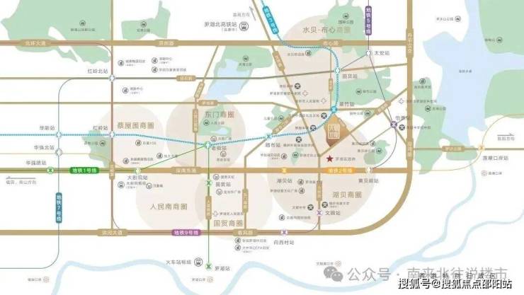 项目位于爱国路与华丽路交汇处,紧邻罗湖区行政中心,双地铁物业(3号线/24号线(规划中)翠竹站,25号线(规划中)木头龙站),6地铁环绕(1、2、3、5、24号线(规划中)25号线(规划中))。