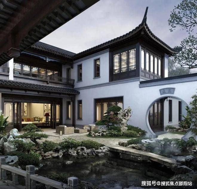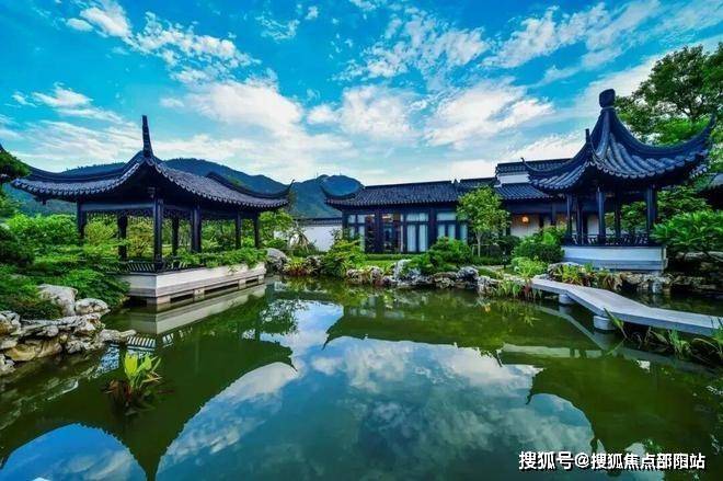 北入户,单边位,入户四水归堂,前后花园宽阔,围合式设计,传统中式建筑风格,文化底蕴浓厚,且私密性好,远眺凤凰山山景尽纳眼底