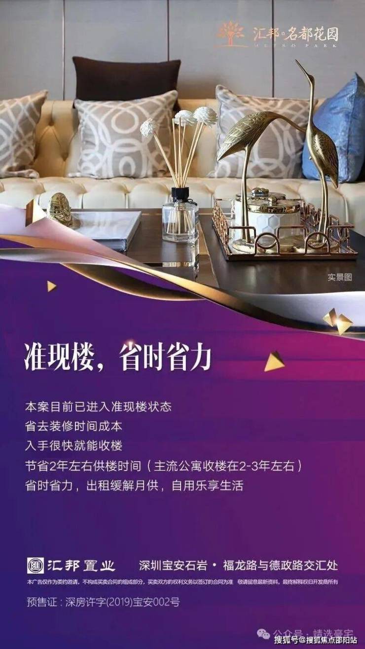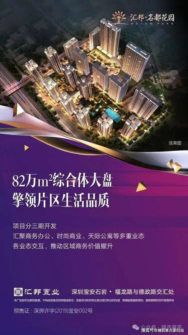 【售楼地址】:深圳宝安石岩福龙路与德政路交汇处(龙大高速水朗出口旁~导航汇邦名都花园)