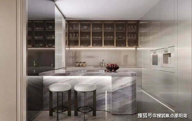 悦府用材严苛,公建化的外立面,其中玻璃+铝板幕墙覆盖面积超95%,是普通立面成本的2-3倍,不但颜值非常高,而且历久弥新。而建筑内部,大面积使用故宫同款汉白玉、雪山银狐等奢石,尽显高贵。