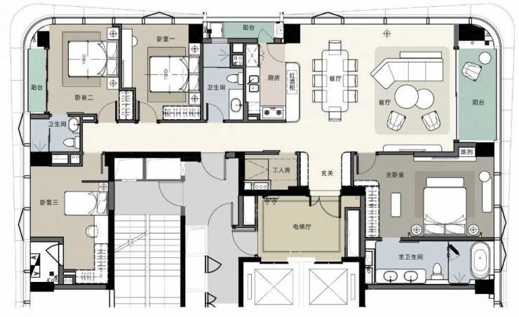 【 233户型 】4+1房2厅3卫 2梯2户