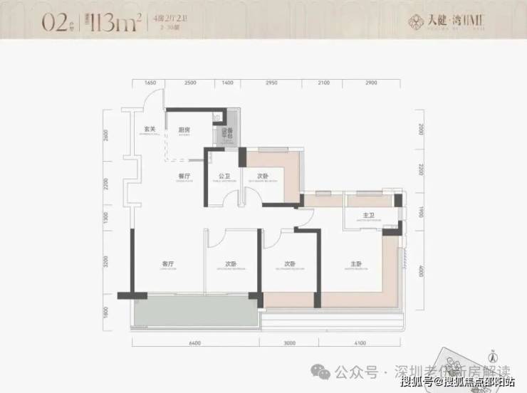 02.03户型·113㎡·4房2卫·竖厅·西南