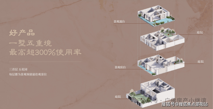 五花园:前庭后院,首创「五花园」式的设计满足长辈种花种菜的小爱好和儿孙玩闹的空间
