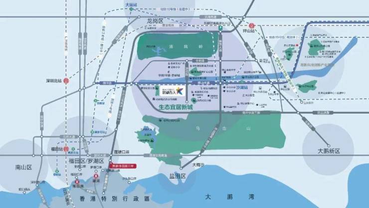 全维交通枢纽,执掌城市脉搏项目坐落生态坪山门户位置,是坪山距离市区最近住宅项目,周边一高铁三地铁四快速,位于罗湖、龙岗、坪山三区核心,半小时即享城芯配套,远离城市喧嚣,不离城芯生活。