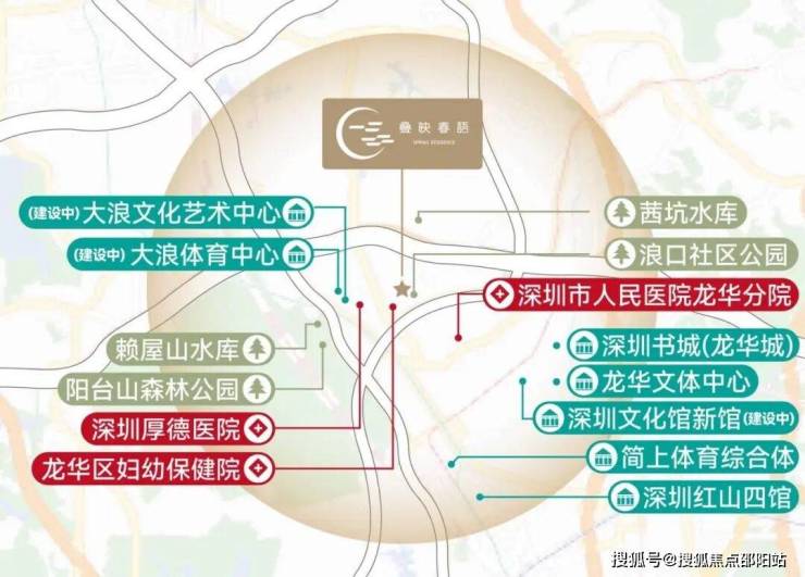 约3公里内阳台山森林公园,差不多是15个莲花山的体量;约5公里龙华超级商圈,壹方天地、红山6979等消费体验不输福田南山核心CBD;大浪体育中心和文化艺术中心的陆续落地,还有家门口的百年学府虔贞学校。