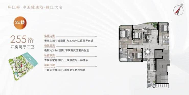 广州幸福湾,拥有2.4km的超长江岸线,稀缺性可见一斑。
