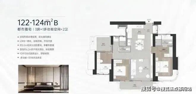 【122-124㎡ 3+1房2卫】B户型:双龙抱珠户型,次卧带阳台。西北朝向(06 )看绿地公园及花园