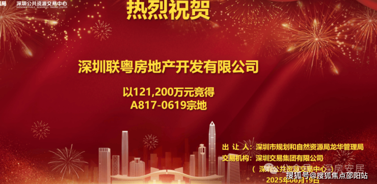 改地块经过30分钟65轮竞争,最终联发以12.12亿元斩获龙华A817-0619宗地,溢价46.6%。