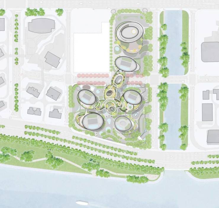广州·鹏瑞1号的造型,设计灵感就来自于波光粼粼的珠江,采用“外圆内方”的造型也暗合中国的传统。(如上图)