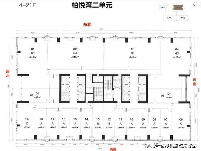 楼层高:1单元5-40层-2单4-43层元商办43层,3-4单元4-48层