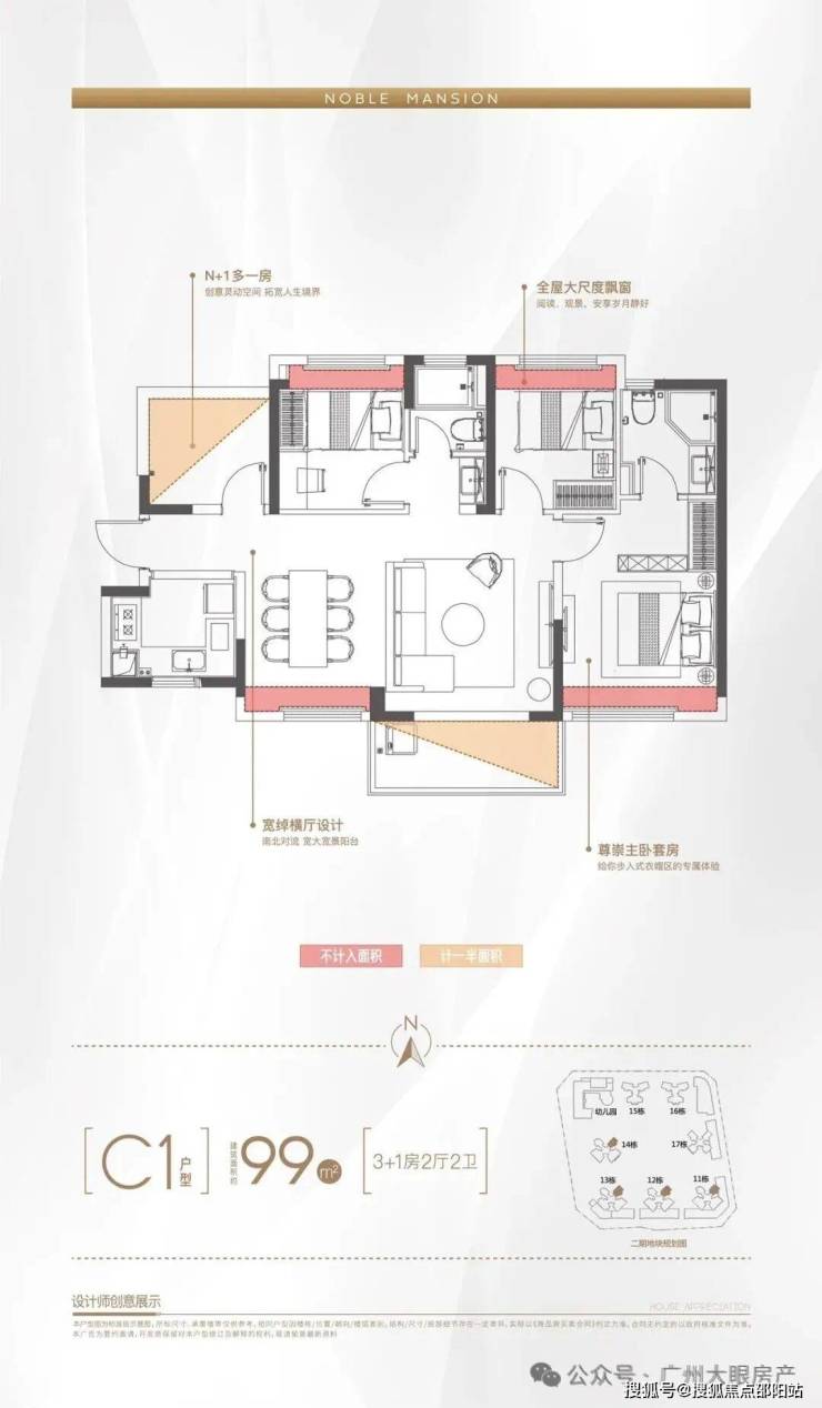 2梯4户、百米楼距、楼王C位、俯瞰6万平园林