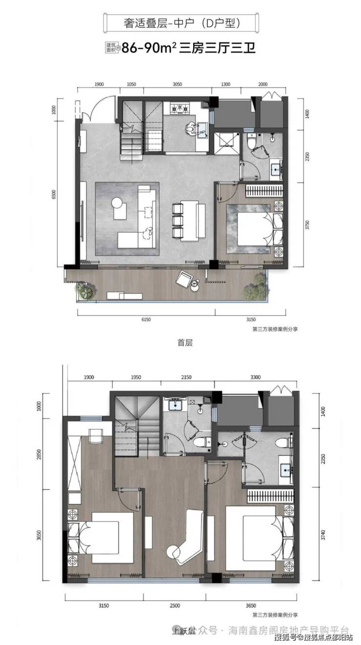 ②奢适叠层:建面约63-92㎡,层高6米