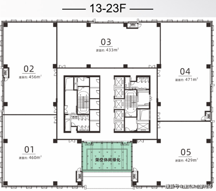 面积段421-470㎡(整层2200㎡),毛坯交付,特价1.5万元/㎡起,均价约2.3万元/㎡