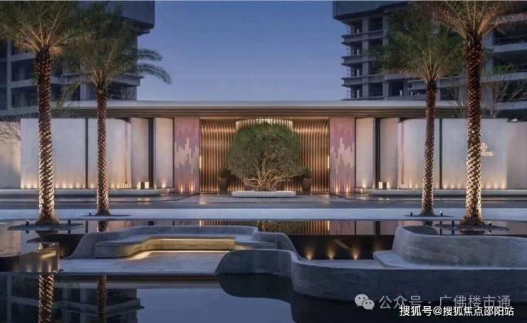 主入口是约55米宽、约8.7米挑高的酒店式大门,再 以各种奢石铺陈