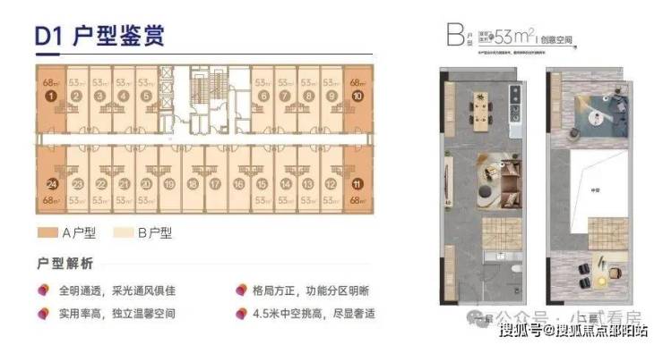 户型特点:整体采用四合院落式布局,使用率超200%,每户均拥有私家庭院,外立面设计超大落地玻璃,充分采光采景、揽园入室;