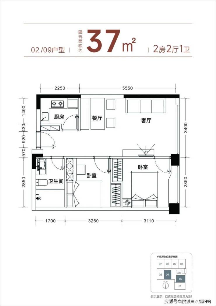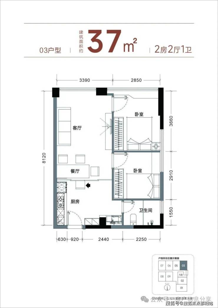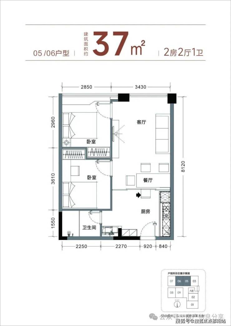 主力为37㎡两房,实际室内实用面积54-63㎡,实际使用率达145%-170%