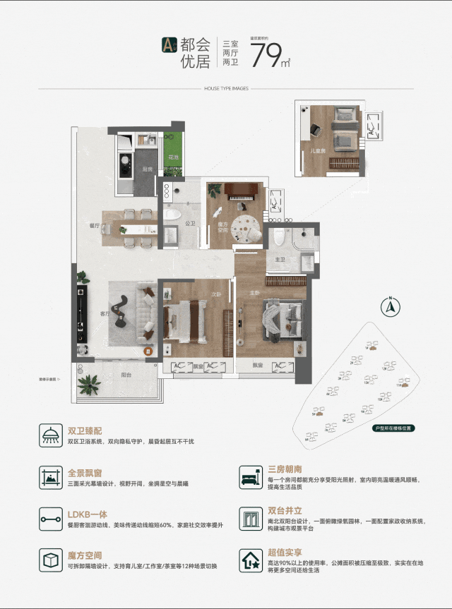 比如建面约79㎡三房,对比同类型产品,有着碾压性优势。