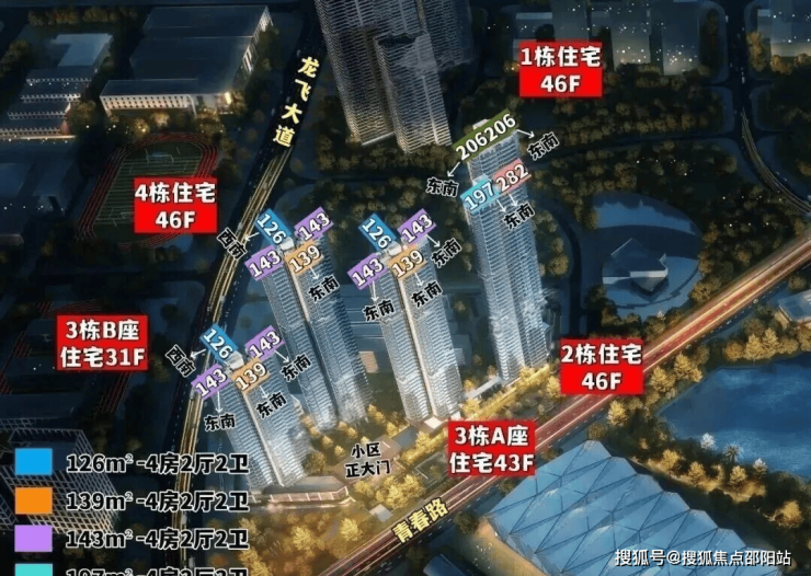 143m²的4房2厅2卫,设计的是竖厅南北通透格局,进门入户玄关,客厅4.5米开间,餐客厅分离设计,四开间朝南,全屋七面飘窗,主卧大套间做到了270度转角无柱飘窗,U型厨房,公卫三段式干湿分离,得房率约92.2%(包含赠送),客厅连接次卧出7.4米长的观景大阳台,全部主朝东南向,看大运中心+大运公园景观。