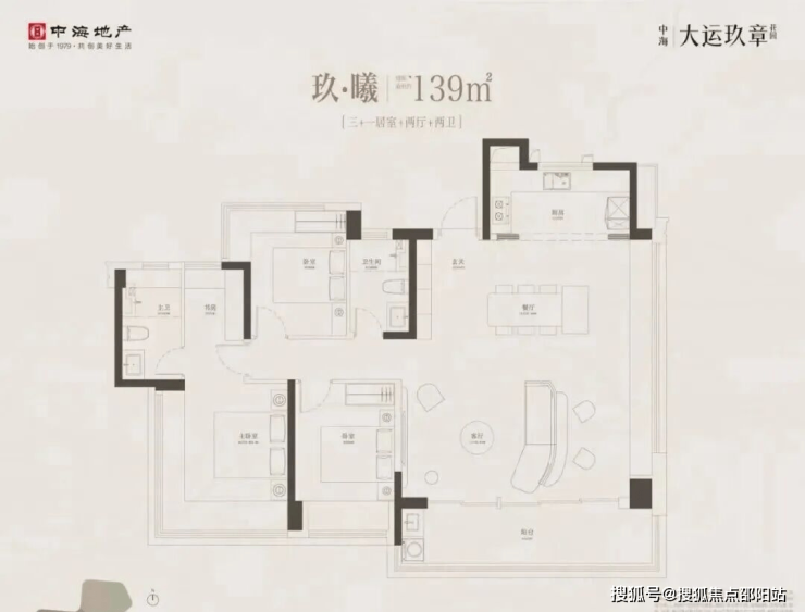 139m²的4房2厅2卫,设计的是竖厅方正大面宽格局,进门入户玄关,客厅7米开间,LDKB一体化设计,超大客厅+餐厅位,还有东北侧超大飘窗景观面,动静分区,三开间朝南,主卧做到了270度转角无柱飘窗,U型厨房,卫生间干湿分离,得房率约93%(包含赠送),客厅正出7米长的超大观景阳台,全部东南朝向,看大运中心+大运公园景观。也可以做5房设计。