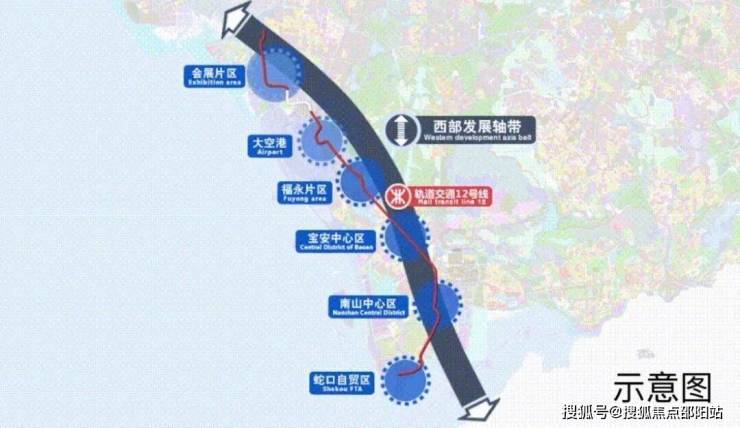 深圳西部发展“大动脉”:地铁12号线由南向北依次串联蛇口自贸区、南山中心区、前海自贸区、宝安中心区、机场和会展片区,是支撑深圳西部发展轴的轨道交通骨干线。