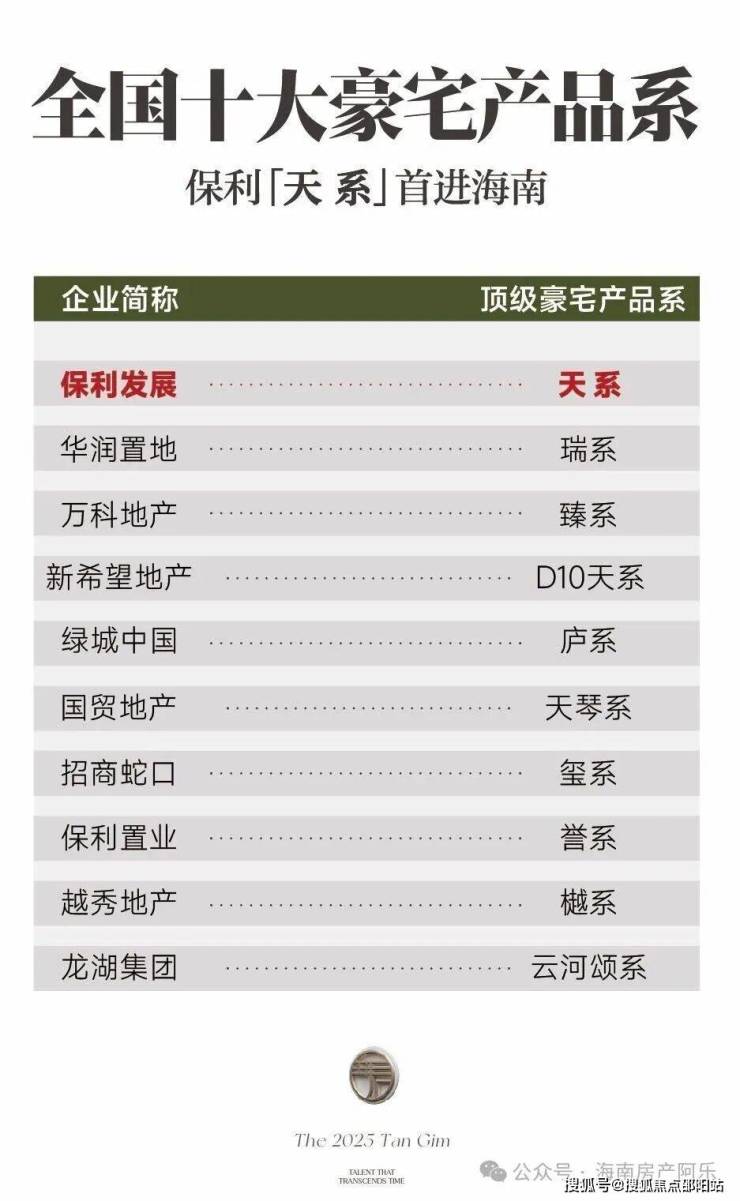 天系,以客户需求为圆心,根据城市基座,提出“甄选城芯、产品打造、服务配置”三个方面的严苛要求,因而成为保利顶级豪宅产品系。且是全国十大豪宅产品系中首位进入海南的。