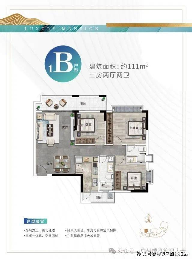 【产品】新洋房2梯4户的经典户型,层高3米、开间宽阔、南北超大双阳台设计。